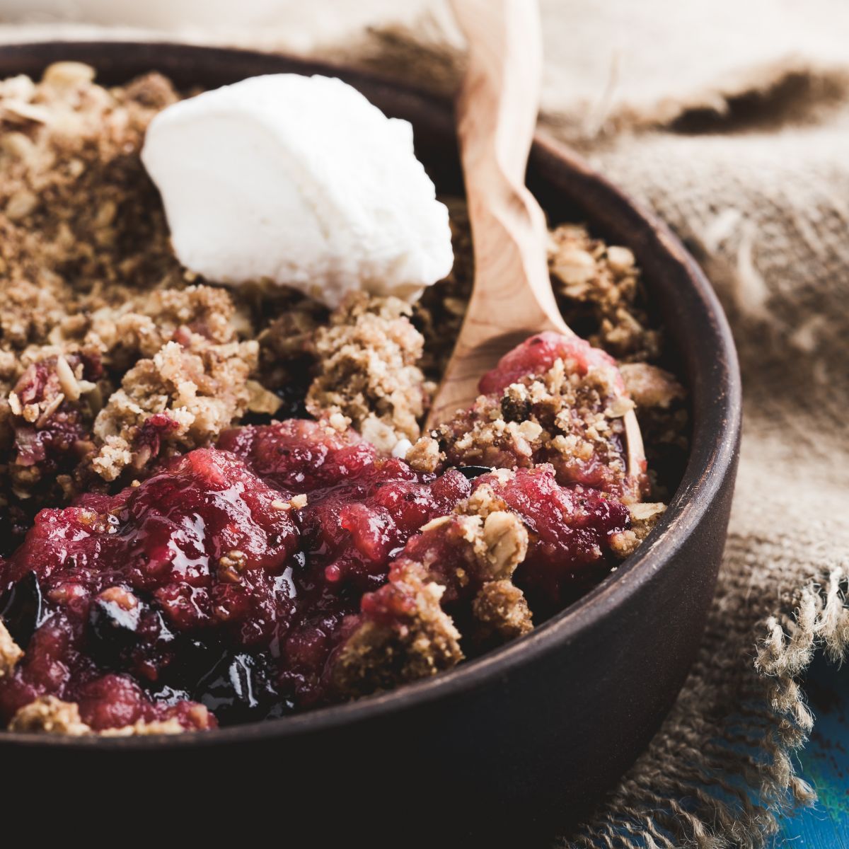cherry compote, brown butter, vanilla streusel, sweet berry juices bubbling over buttery crumble