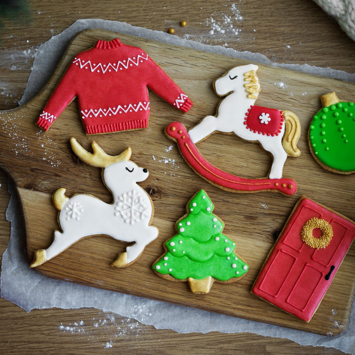 butter cookies, fir needle, vanilla sugar, little hands icing cookies as the tree lights twinkle